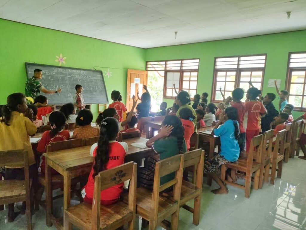 TTU, “TABLOIDNUSANTARA.COM” – Selain betugas menjaga wilayah perbatasan, prajurit Satgas Pamtas RI-RDTL Yonif 743/PSY menjadi tenaga pengajar dalam rangka mendukung program pemerintah dalam mencerdaskan anak – anak di perbatasan bertempat di Sekolah Dasar Tubu, Desa Tubu, Kecamatan Bikomi Nilulat, Kabupaten Timor Tengah Utara, pada Jumat (04/02/2022)
