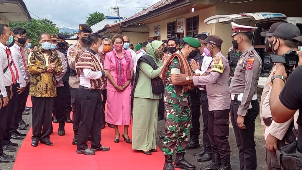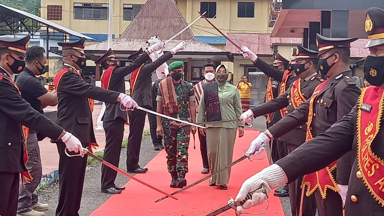 Terlihat, Letkol Inf Supyan Munawar, S.Ag., bersama Ny. Yuli Supyan Munawar berjalan tapak demi tapak melewati barisan Pedang Pora, hingga penghujung diusung oleh personil Polres Alor keluar dari kesattian Polres Alor dan diantar hingga ke rumah jabatan. (Kodim 1622/Alor)