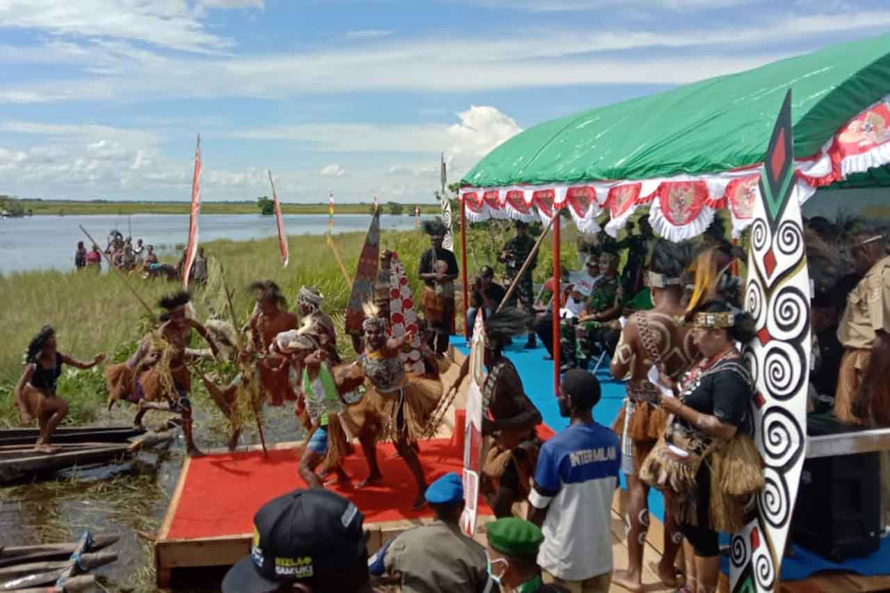 Mappi, “tabloidnusantara.com” – Bertempat di Muara Miwaman Kampung Rep Distrik Obaa Kab. Mappi, Komandan Kodim 1707/Merauke Letkol Inf Bayu Kriswandito, S.Hub., Int. dengan didampingi Ketua Persit KCK Cabang XVIII Kodim 1707/Merauke Ny. Nita Bayu Kriswandito menghadiri kegiatan pembukaan Festival Budaya Sejuta Rawa Tahun 2022 di Kab. Mappi yang dipimpin langsung oleh Michael R. Gomar, S. STP., M.Si (Pejabat Bupati Mappi) dan diikuti sekitar 2.000 orang terdiri dari enam Suku Besar yang berada di Kabupaten Mappi, Kamis (8/12/2022).