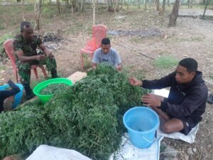 Belu, “TABLOIDNUSANTARA” – Untuk mengatasi permasalahan stunting dan gizi buruk di Provinsi NTT Koramil jajaran Kodim 1605/Belu mulai menampung hasil produksi daun kelor dari masyarakat.