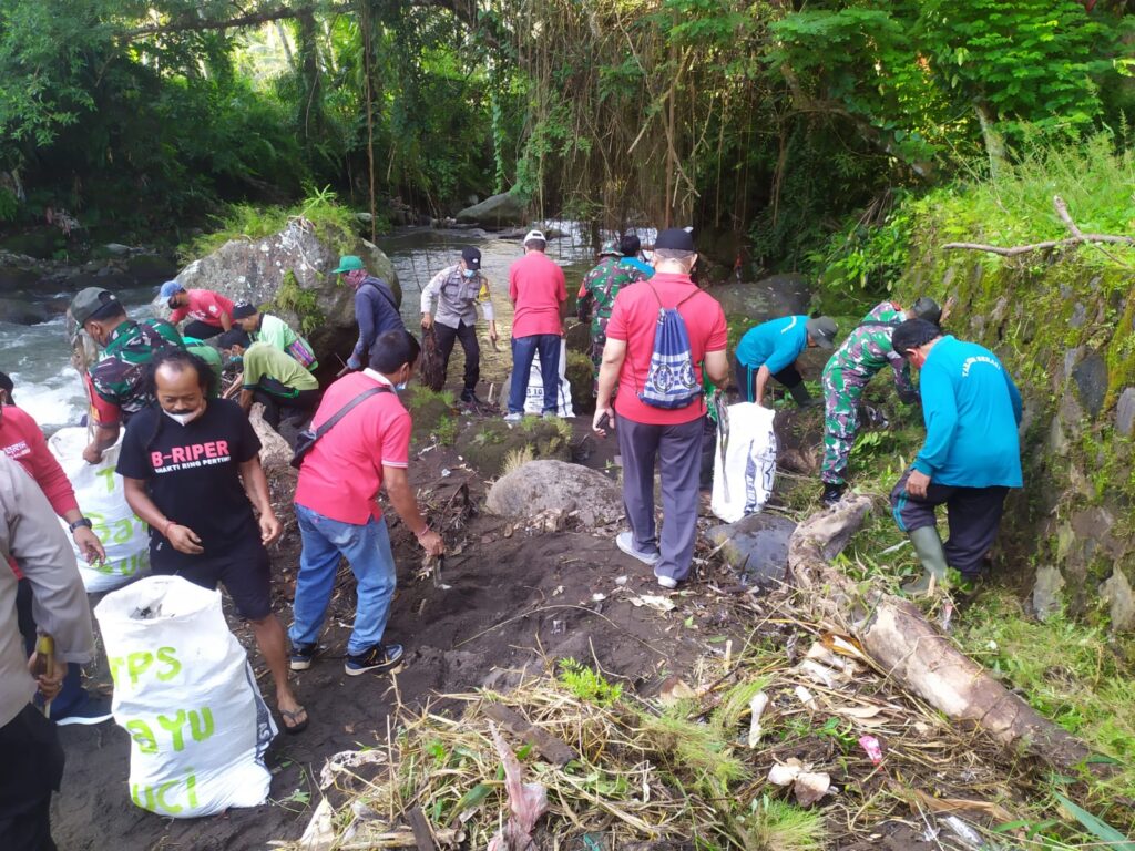 Tabanan, “TABLOIDNUSANTARA” – Danramil 1619-06/Marga Kapten Inf I Nengah Sudiana bersama Muspika Marga diantaranya Camat Marga Drs I Gsti Agung Alit Adiatmika dan Kapolsek Marga AKP I Gede Budiarta, S.H., M.H., menghadiri kegiatan kerja bhakti pembersihan sungai dan penuangan ECO Enzyme bersama Enzyme Bali dan Yayasan Bhakti Ring Pertiwi dalam rangka memperingati “Hari Bumi”, pada Jumat (22/4/2022).