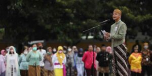 Semarang, “tabloidnusantara.com” – HUT PGRI ke 77, “Ganjar menegaskan, hanya di era Presiden RI Joko Widodo ratusan ribu guru honorer kini diangkat menjadi PPPK. “Jadi saya minta para guru jangan khawatir dengan nasibnya.