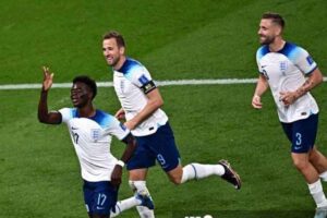 “Alhasil Mereka mampu unggul 3-0 pada babak pertama, Gol-gol yang membawa timnas Inggris unggul 3-0 dicetak oleh Jude Bellingham (35′), Bukayo Saka (43′), dan Raheem Sterling (45+1′).