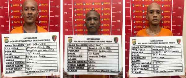 “Ketiga pelaku ditangkap pada Kamis (7/3) di wilayah Muara Baru dan Penjaringan,” kata Kepala Satuan Reserse Kriminal (Kasat Reskrim) Polres Pelabuhan Tanjung Priok I Gusti Ngurah Putu Krisnha Narayana di Jakarta, Jumat (7/3).