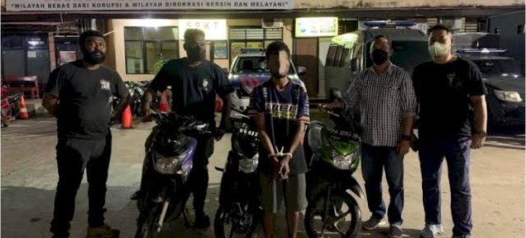 Setelah kedua pelaku berhasil diamankan kemudian tim melakukan penggeledahan “dari hasil penggeledahan, tim mengamankan barang bukti berupa satu unit sepeda motor Yamaha Jupiter Z1 warna hijau milik korban, 1 unit HP Samsung A50 S milik korban, 1 buah pisau dan 1 buah badik milik pelaku yang digunakan saat melakukan aksinya, serta beberapa kartu identitas milik pelaku.” Ucap Kasat Reskrim.