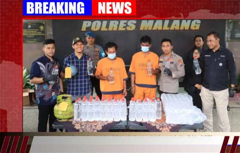 MALANG, tabloidnusantara.com – Reserse Narkoba (Satresnarkoba) Polres Malang berhasil membongkar home industry minuman keras tradisional jenis trobas di Kecamatan Bantur, Kabupaten Malang. Kasus ini terungkap setelah polisi menerima laporan dari masyarakat terkait peredaran miras ilegal di wilayah tersebut. Setelah melakukan penyelidikan, petugas menangkap dua tersangka, yakni SI (44), warga Desa Wonorejo, dan HS (55), warga Desa Bantur, Kecamatan Bantur. Keduanya diamankan bersama barang bukti 260 liter miras siap edar.