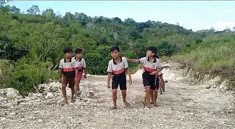 “Memang ada sih jalan menuju sekolah, tapi jauh sehingga butuh waktu yang lama untuk sampai di sekolah,” imbuhnya.