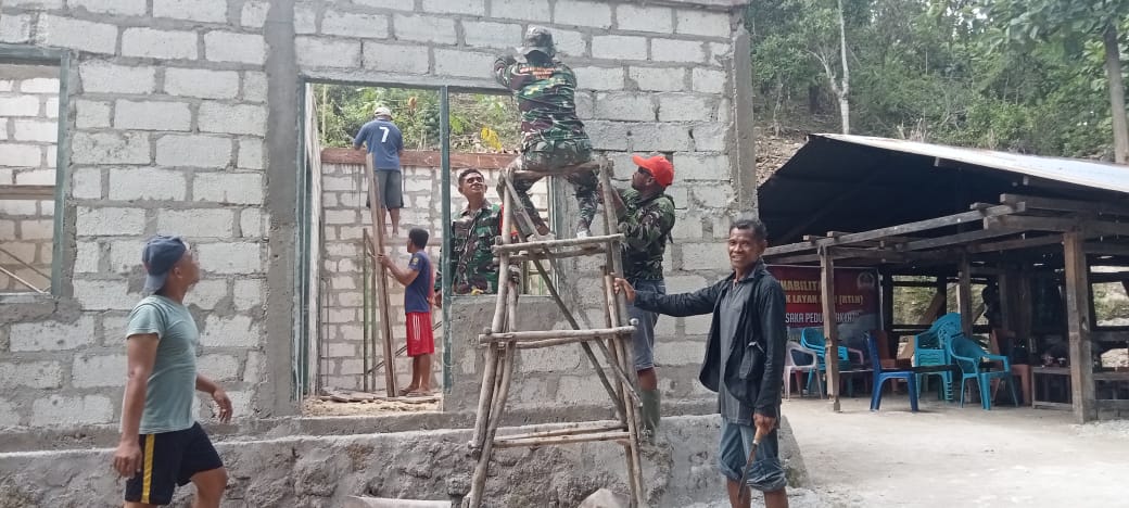 Terlibat langsung dalam kegiatan pembangunan RTLH tersebut yaitu anggota Kodim 1627/Rote Ndao yang secara bergotong royong dan bahu membahu bersama warga setempat.