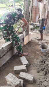 Dalam pelaksanaannya, anggota Koramil 1612-03/Reo bersama warga tampak penuh semangat untuk menyelesaikan pekerjaan agar dapat ditempati sebelum habis waktu yang telah ditentukan.