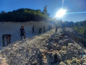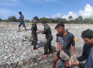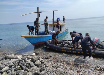 Sementara itu Danpos Oepoli Pantai Letda Inf Erwan menjelaskan bantuan dari Pos Oepoli Pantai bersama-sama dengan masyarakat mengumpulkan batu karang di pinggir pantai ini bertujuan untuk pembangunan tempat ibadah.