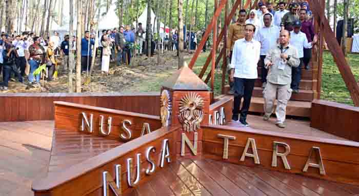KALIMANTAN, “tabloidnusantara.com” – Presiden Joko Widodo didampingi para menteri meninjau Miniatur Reforestasi Hutan Tropis di Kawasan IKN, dan melaksankan penanamna pohon bangkirai di lokasi Miniatur Reforestrasi Hutan Tropis. “Rabu (20/12/2023).