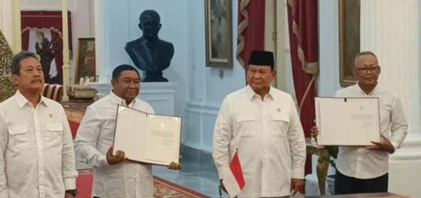 Dalam agenda itu, Presiden Prabowo menandatangani tiga berkas PP, yang terbagi atas bidang perikanan dan kelautan, bidang pertanian, perkebunan dan peternakan, serta bidang UMKM.