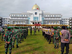 Didampingi Pangdam IX/Udayana Mayjen TNI Sonny Apriyanto, S.E., M.M., di lokasi peninjauan, Kepala Negara menyimak penjelasan panel yang disampaikan oleh Wakil Asisten Logistik Kasdam IX/Udayana Letkol Kav Djefri Marsono Hanok.