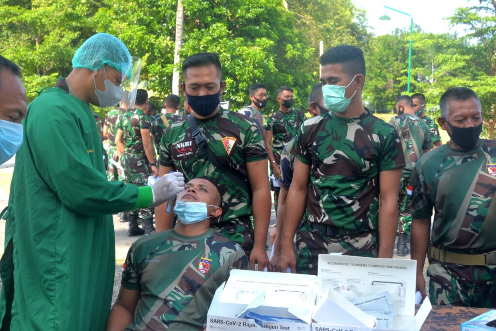 Selanjutnya para personel purna tugas Apter BKO Kodam XVIII/Kasuari yang dipimpin Kapten Ckm Sugiono tersebut menuju Kompi A Yonif Raider 900/SBW dan disambut oleh Asops Kasdam IX/Udayana, Kolonel Inf Lalu Habibburrahim W, S.I.P., M.Si., untuk menjalani serangkaian pemeriksaan kesehatan termasuk melaksanakan test swab antigen dan pengecekan kelengkapan yang dibawa selama penugasan.