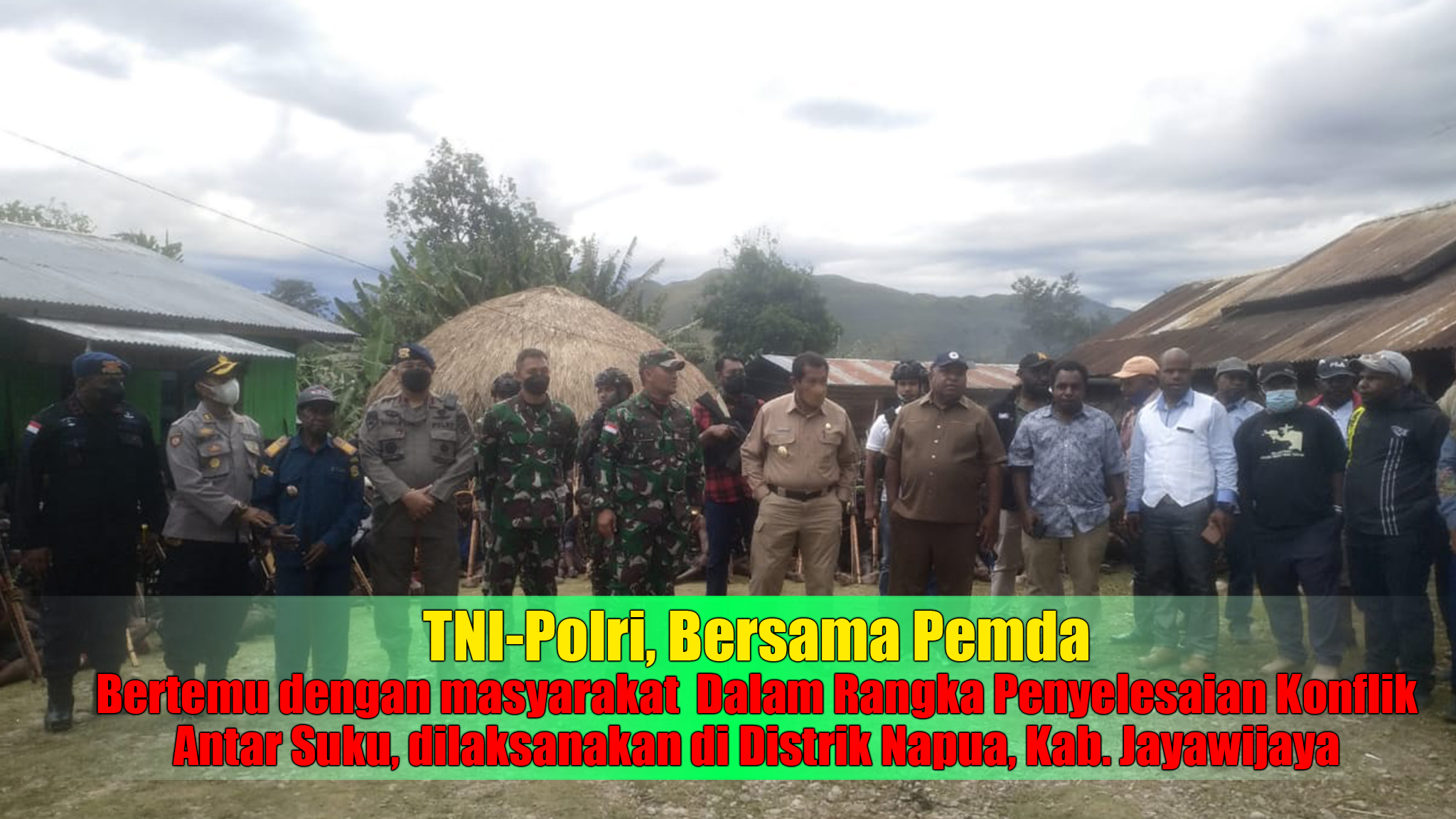 WAMENA, “TABLOIDNUSANTARA.COM” – Guna meredam dan menghentikan konflik antara masyarakat penduduk Ilekma dengan Penduduk Wouma yang terjadi pada beberapa waktu lalu, TNI-Polri dari Kodim 1702/Jayawijaya, Yonif 756/WMS dan Polres Jayawijaya bersama Bupati Kab. Jayawijaya, Bupati Kab. Nduga dan Bupati Lanny Jaya menggelar pertemuan dengan kedua kelompok masyarakat, Senin (10/1).