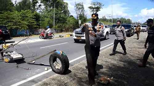 JAYAPURA, “tabloidnusantara.com” – Respon cepat aparat keamanan, bubarkan pemalangan di jalur yang akan di lewati Presiden Joko Widodo, Pantai Holtekamp ujung Jembatan Youtefa, Kapolresta Jayapura Kota Kombes Pol. Dr. Victor D. Mackbon ajak elemen masyarakat dan stakeholder terkait duduk diskusi temukan solusi bertempat di Jalur Holtekamp Distrik Jayapura Selatan, Senin (20/3/2023) pagi.