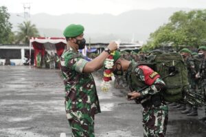 Brigjen TNI Ahmad Rizal Ramdhani menyambut kedatangan satgas pamtas RI-RDTL Sektor Timur, 400 personel Satgas Pamtas dari satuan Yonif 742/SWY