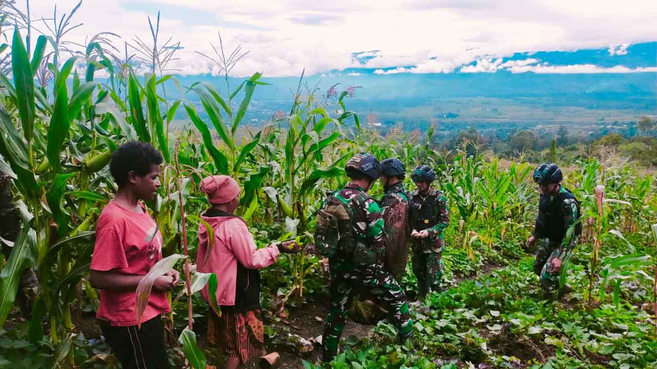 Wujudkan Ketahanan Pangan Di Papua Satgas terus mendorong dan memotivasi masyarakat agar bersemangat dalam kegiatan bercocok tanam agar meningkatnya perekonomian