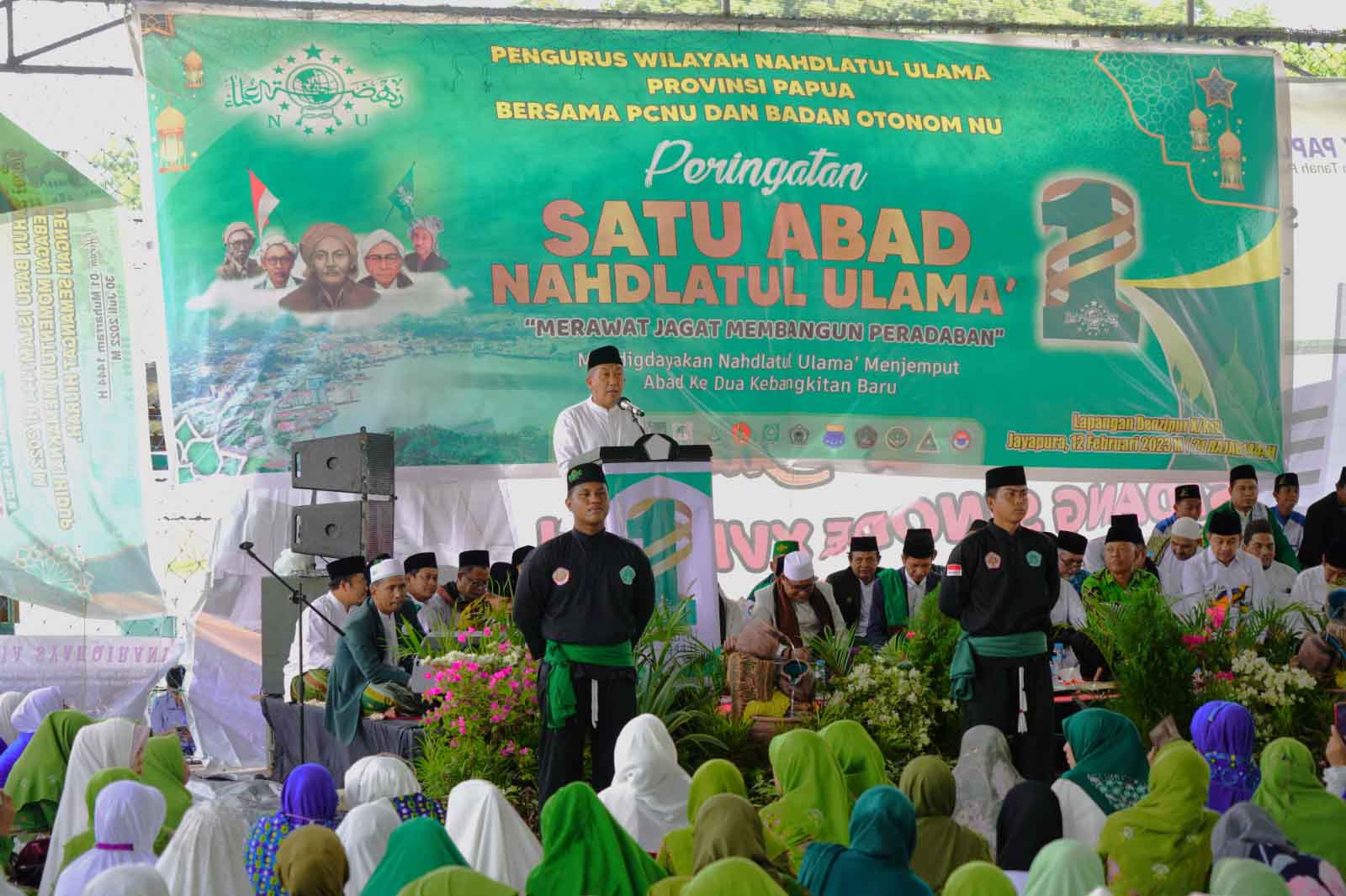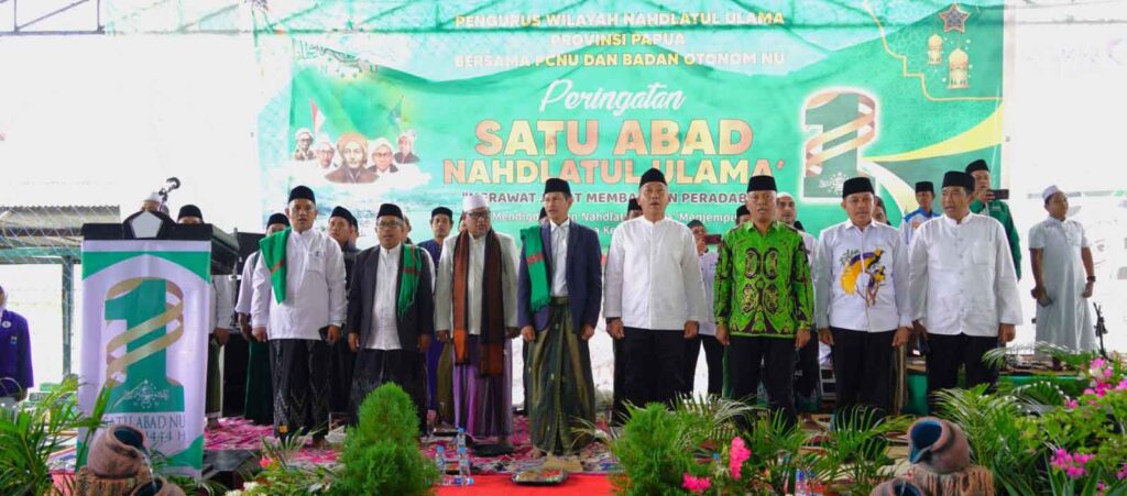 Jayapura, “ Tabloid Nusantara ” – Pangdam XVII/Cenderawasih Mayjen TNI Muhammad Saleh Mustafa diwakili oleh Kasdam XVII/Cenderawasih Brigjen TNI R. Sidharta Wisnu Graha, S.E. menghadiri Peringatan Satu Abad Nahdlatul Ulama (NU) di Denzipur 10/KYD Jalan Raya Abepura-Sentani, Kp. Waena, Kec. Heram, Kota Jayapura, Papua, Minggu (12/2/2023).