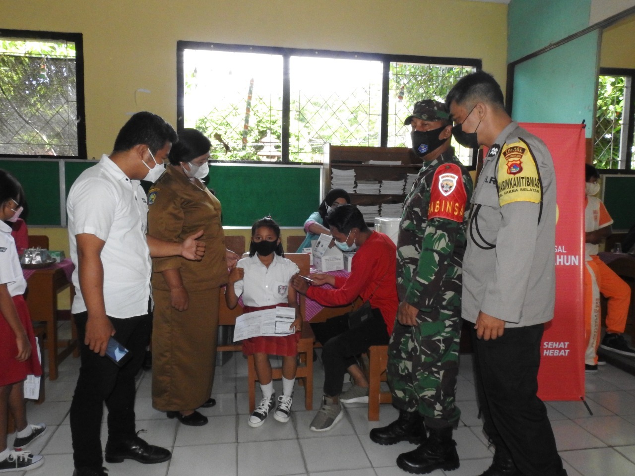 Danramil 1606-01/Cakranegara Kapten Inf Jamuhur, S.Sos., disela-sela kesibukanya menjelaskan, untuk serbuan vaksin usia 6 sampai 11 tahun di SD Negeri 20 Cakranegara yang sudah melaksanakan vaksin ke 2 berjumlah 248 jenis Sinovac.