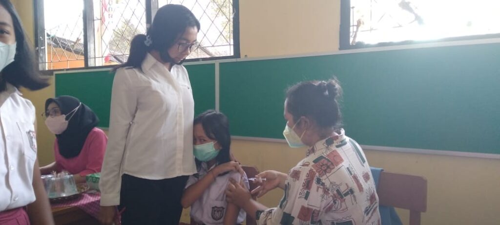 Mataram, “TABLOIDNUSANTARA” – Siswa Sekolah Dasar (SD) di Kelurahan Cakranegara Selatan, Kota Mataram mendapatkan suntikan Vaksin Covid-19 pada Selasa (1/3/2022). Secara bergiliran mereka divaksinasi oleh petugas dari Puskesmas Cakranegara.
