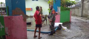 Mengetahui hal tersebut, personel Bintara Pembina Desa (Babinsa) Komando Rayon Militer (Koramil) 1606-09/Ampenan bersama guru dan staf menguras air dengan bantuan mesin pompa/desel air, pada Senin (13/2/2023).
