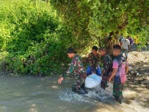 Kupang, “TABLOIDNUSANTARA” – Selalu hadir di tengah masyarakat untuk mengatasi kesulitan masyarakat, Satgas Pamtas RI-RDTL Yonif 743/PSY Pos Oepoli Pantai gotong royong bersama masyarakat membuat tanggul saluran irigasi di Desa Netemnanu, Kecamatan Amfoang Timur, Kabupaten Kupang, pada Minggu (29/05/2022).