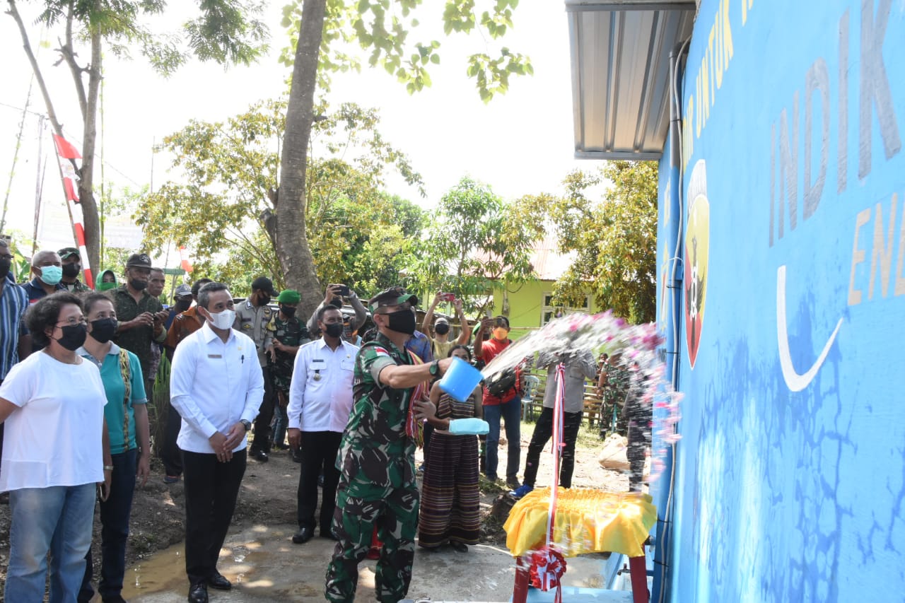 Diawali dengan pemotongan pita, peresmian ditandai dengan penyiraman air bunga ke Bak Penampungan Air Bersih yang didampingi oleh Sekda Kabupaten Belu, Camat Kota Atambua, Lurah Manumutin, Danramil 1605-01/Kota Atambua, Babinsa, Babinkamtibmas, Tokoh Agama, Ketua RT/RW, serta Tokoh Adat dan Tokoh Masyarakat.