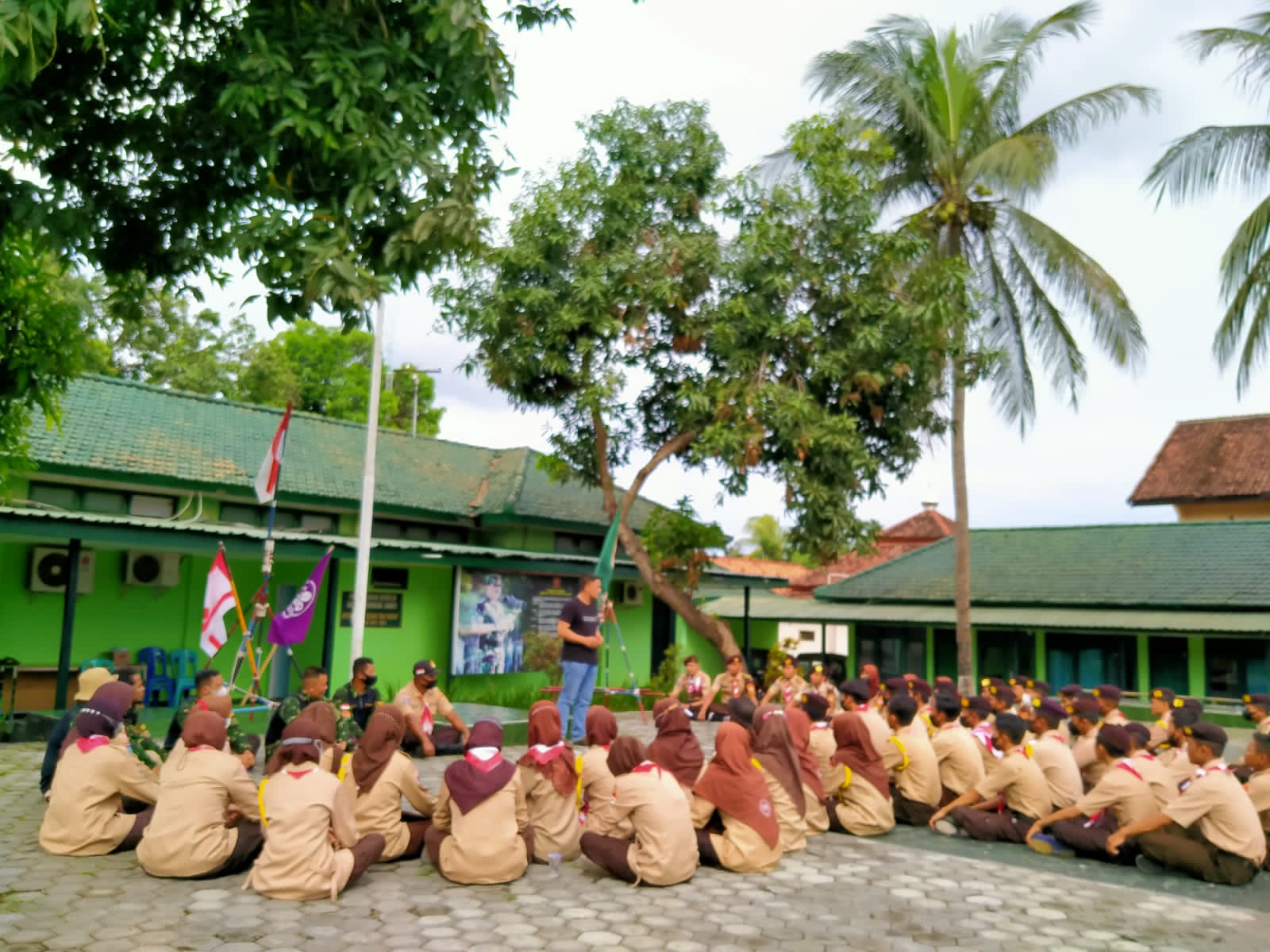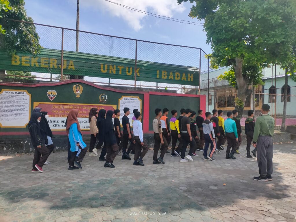 Terlihat Pelda Lalu Sumartono selaku pembina Pramuka Saka Wira Kartika Kodim 1615/Lotim memberikan pelatihan seperti PBB, Pionering, senam kreasi dan SMS di Makodim jalan Prof. M. Yamin Selong.