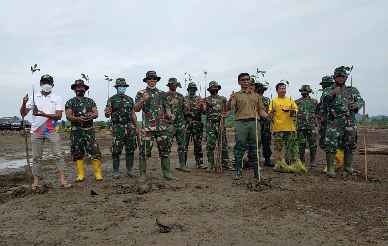Dandim menjelaskan tumbuhan mangrove adalah tumbuhan yang tumbuh di daerah pasang surut, terutama di pantai yang terlindung, atau muara sungai yang tergenang pada saat pasang dan bebas dari genangan pada saat surut yang komunitas tumbuhannya bertoleransi terhadap salinitas.