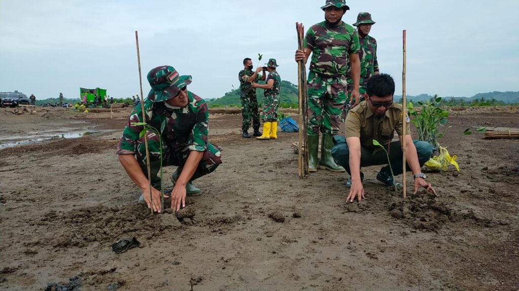 Loteng, “TABLOIDNUSANTARA.COM” – Prajurit TNI Kodim 1620/Lombok Tengah bersama dengan Unit Pelaksana Teknik Kementerian Lingkungan Hidup dan Kehutanan (KLHK) Provinsi Nusa Tenggara Barat dan PT. Pengembangan Pariwisata Indonesia (Persero) atau Indonesia Tourism Development Corporation (ITDC), menanam sebanyak 15 Ribu tumbuhan Mangrove di Desa Mertak Kecamatan Pujut, pada Senin (17/1/2022).