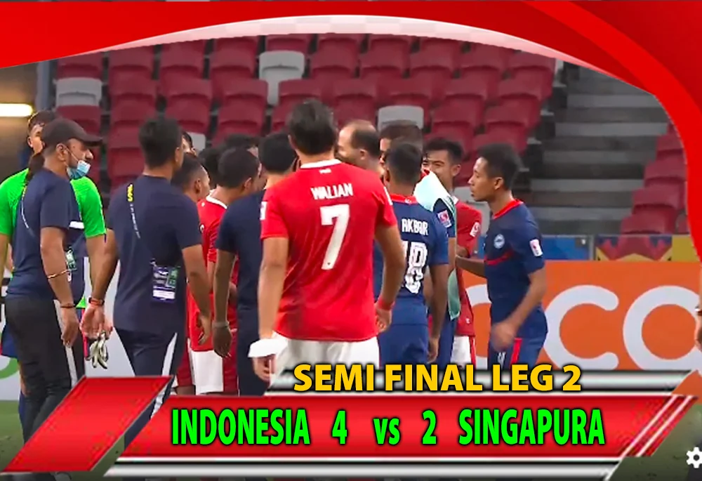 “Pertandingan Semifinal Piala AFF 2020, semakin panas, jual beli serangan terus terjadi, banyak insiden yang tidak bisa terbendung, sampai-sampai wasit Qasim Matar Ali Al Hatmi, mengeluarkan 3 kartu merah untuk pemain Timnas Singapura.