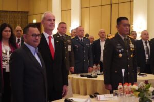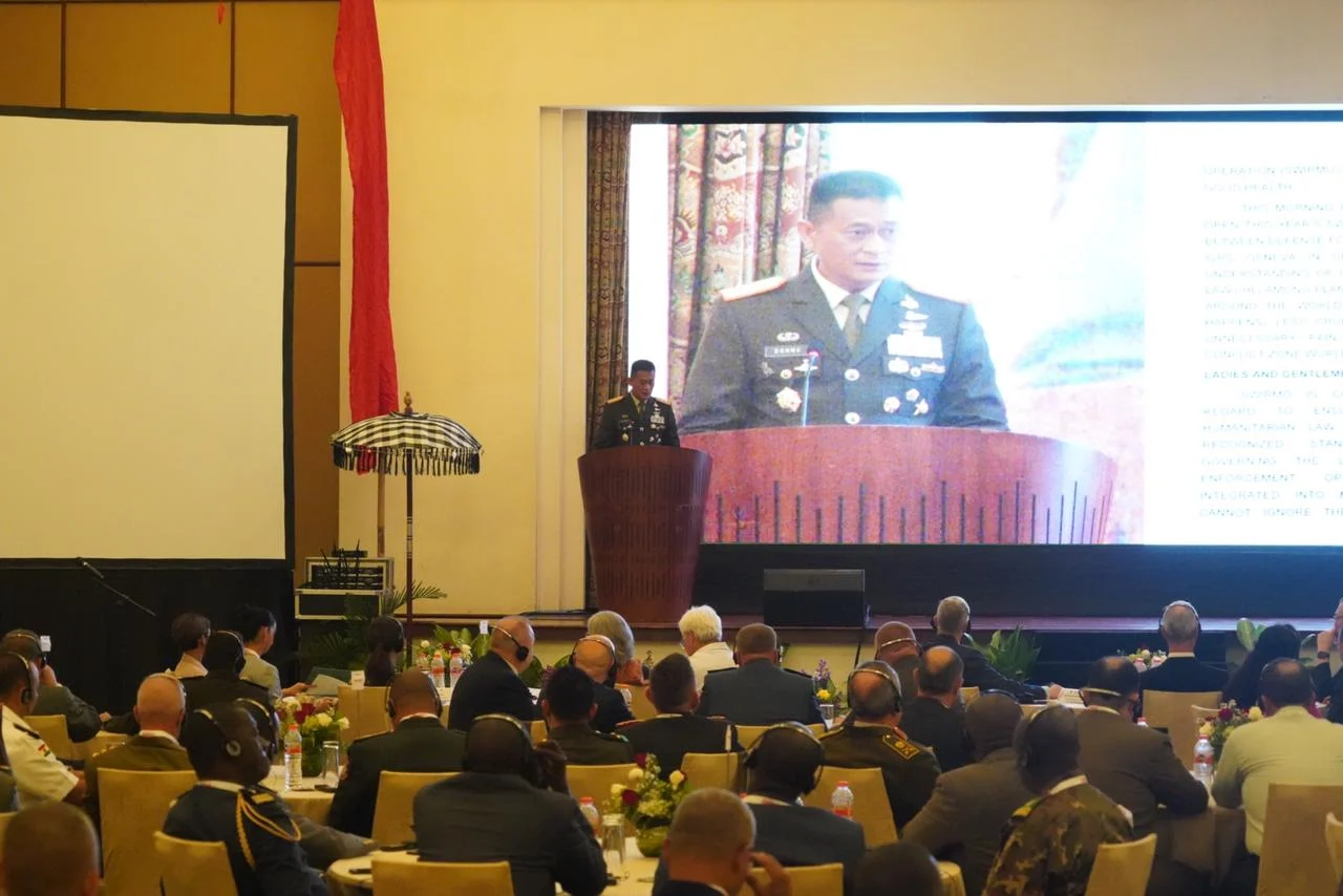 Badung – Ditandai pemukulan gong, Wakil Presiden ICRC DR. Gilles Carbonnier bersama Panglima TNI yang diwakili Pangdam IX/Udayana Mayjen TNI Sonny Aprianto, S.E., M.M., membuka acara Senior Workshop on International Rules governing Military Operations (SWIRMO) yang diikuti lebih dari 130 perwira militer senior dari sekitar 85 negara, bertempat di Hotel Grand Hyatt, Nusa Dua, Badung, Bali, pada Senin (21/11/2022).