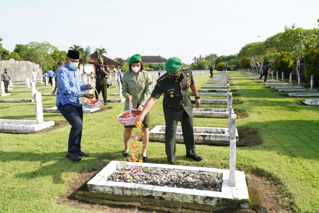 Perayaan puncak HUT ke 71 tahun 2022 kali ini terasa berbeda dari tahun-tahun sebelumnya mengingat masih dalam situasi Pandemi Covid-19, dengan rangkaian kegiatan diawali ziarah rombongan ke Taman Makam Pahlawan (TMP) Pancaka Tirta, Banjar Taman Sari, Desa Delod Peken, Kecamatan Tabanan, Kabupaten Tabanan dan saya sebagai Kapendam IX/Udy memimpin langsung ziarah rombongan tersebut.