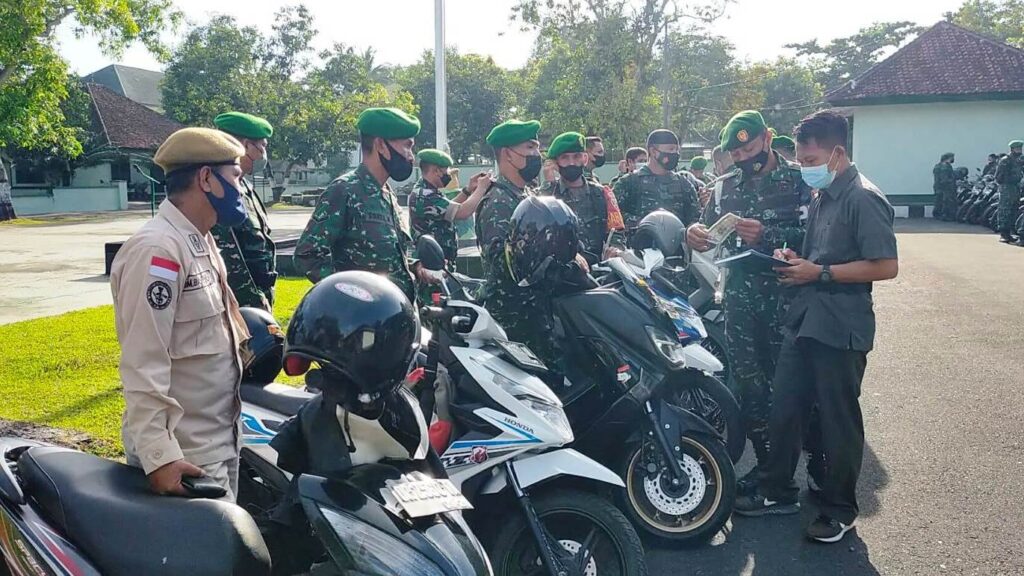Lombok Tengah, “TABLOIDNUSANTARA.COM” – Tak ingin prajuritnya melanggar lalu lintas, Satuan Kodim 1620/Lombok Tengah melakukan pemeriksaan kelengkapan kendaraan. Baik kendaraan dinas ataupun pribadi, yang menggunakan Roda Dua maupun Roda Empat, seluruhnya diperiksa di Makodim Kecamatan Praya, Senin 24 Januari 2022.