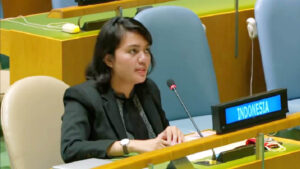 Diplomat Indonesia Silvany Austin Pasaribu menyampaikan sikap Indonesia atas tudingan Vanuatu terkait persoalan di Papua pada Sidang Majelis Umum PBB. (riauposjawapos)