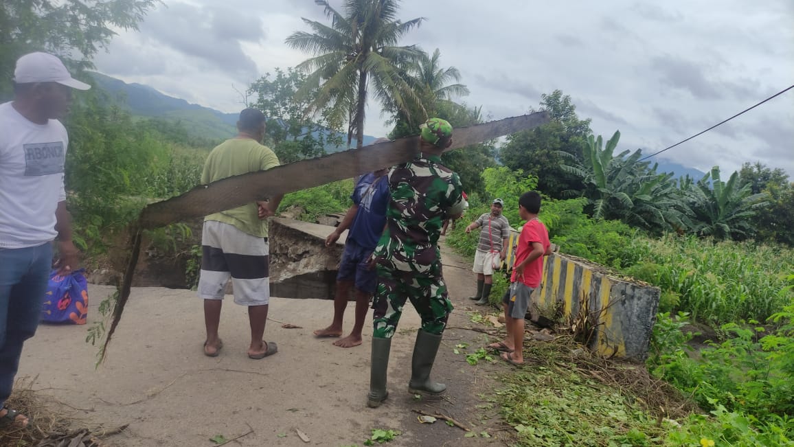 Sebagai bentuk kepedulian Dandim 1625/Ngada Letkol Czi Deni Wahyu Setiyawan didampingi oleh Plh. Danramil-05/Aesesa Serka Loudwik Payong dan masyarakat setempat, meninjau langsung lokasi yang terdampak banjir di beberapa wilayah di Kecamatan Aesesa, Kabupaten Nagekeo, pada Minggu (5/2/2023).