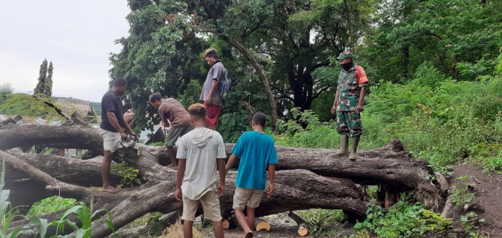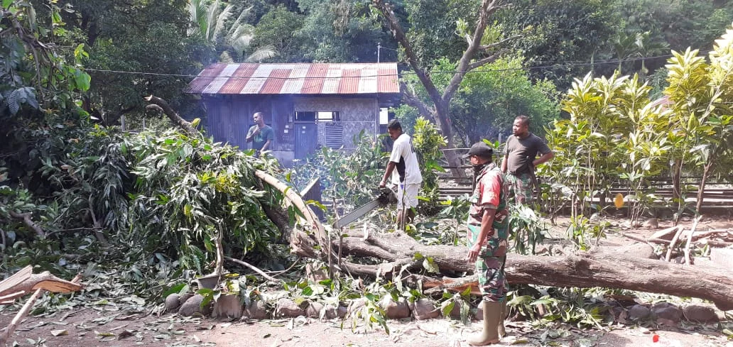 Babinsa Serda Isak menuturkan, pembersihan dan pemangkasan dahan pohon ini sudah dilakukan bersama warga sejak pertengahan Desember 2021, dan berlanjut hingga hari ini.