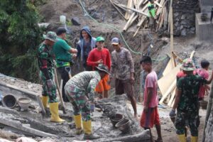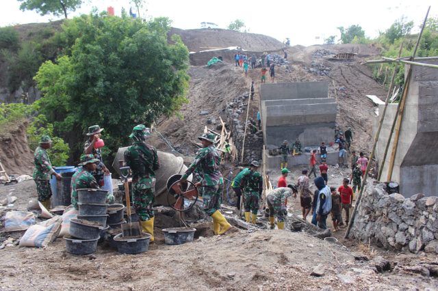 Pengerjaan jembatan yang merupakan sasaran utama dalam TMMD ke 115 Kodim 1606 Mataram di KLU tersebut merupakan salah satu rangkaian dalam proses pembangunan jembatan bersama masyarakat agar jembatan tersebut lebih kokoh nantinya saat menahan arus aliran air.
