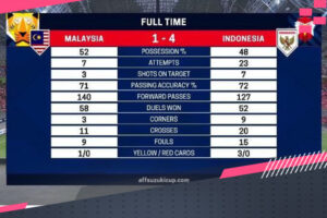 “Malaysia mencoba bangkit dan menekan, Timnas Indonesia, namun anak asuh Shin Tae-yong sangat cerdik dalam memanfaat kelengahan lawan, dimana di menit ke-81, Elkan Baggott dengan tenang dan terukur dalam memanfaatkan kemelut didepan gawang malaysia melalui tendangan pojok Evan Dimas, mampu di hendding Baggott dengan sempurna, skor 1-4 kemenangan untuk Timnas Indonesia melaju ke semi final dengan menjuari Group B Piala AFF 2020.