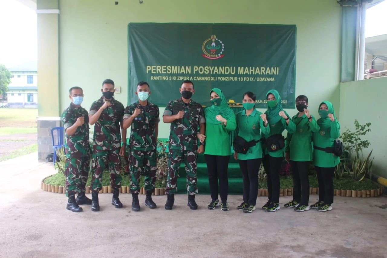 Diresmikan secara langsung oleh Komandan Yonzipur 18/YKR Mayor Czi Damai Adi Setiawan, S.I.P beserta istri, pada Jumat (28/01/2022), Posyandu Maharani dirintis atas usaha para prajurit dan Komandan Kompi sebagai usaha untuk meningkatkan derajat keluarga prajurit khususnya bagi ibu hamil dan Balita.