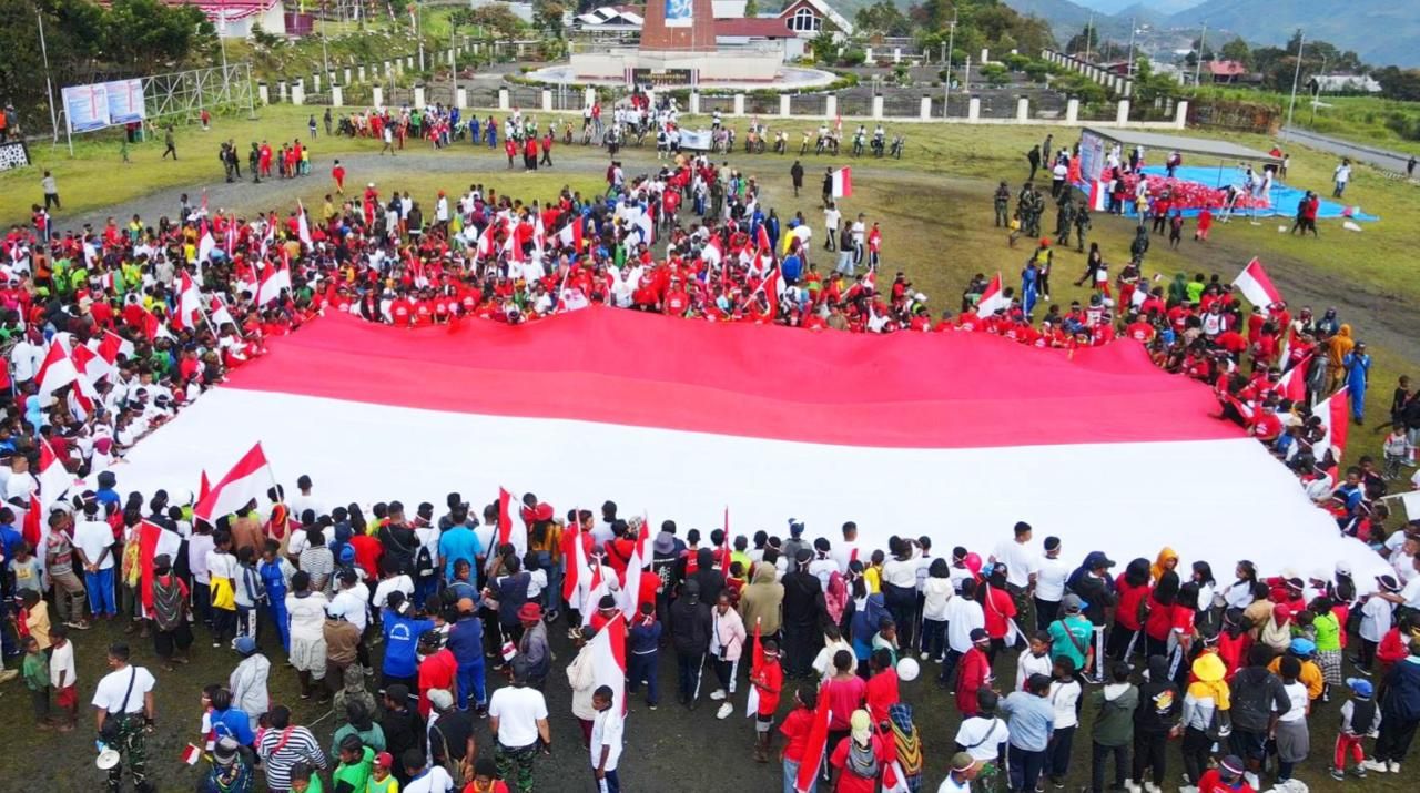 TINGKATKAN JIWA NASIONALISME DAN PERSATUAN, PEMDA PUNCAK JAYA GELAR KIRAB MERAH PUTIH