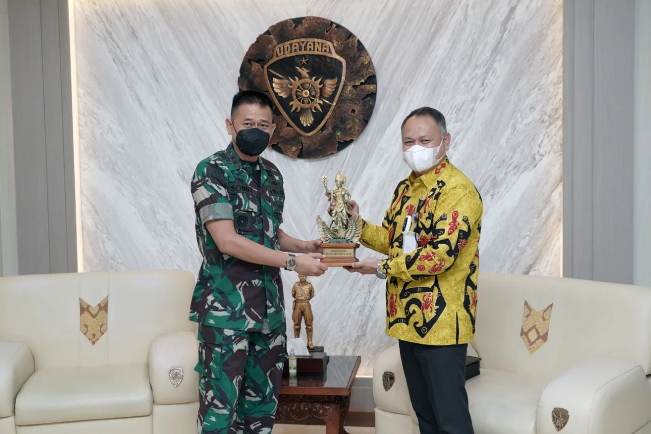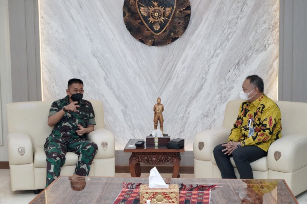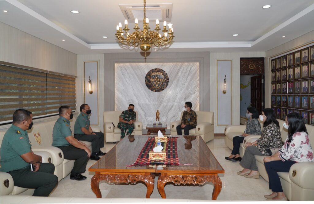 Denpasar, “TABLOIDNUSANTARA” – Pangdam IX/Udayana Mayjen TNI Sonny Aprianto, S.E., M.M., menerima audiensi rombongan dari PT. Bank Tabungan Negara (Persero) Tbk. Kantor Cabang Denpasar, serta PT. Bank Negara Indonesia (Persero) Tbk. Kanwil Bali dan Nusa Tenggara, di Ruang Tamu Pangdam IX/Udayana, Makodam, Denpasar, pada Kamis (7/4/2022).