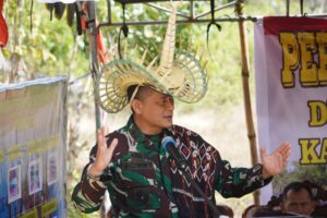 Dalam agenda kunjungan kerjanya usai memberikan pengarahan di Kodim 1627/Rote Ndao, pada Senin (4/7/2022), Pangdam IX/Udayana beserta rombongan tiba di lokasi Pompa Hidram, disambut hangat oleh masyarakat dengan tarian Kabalai serta penyematan Topi Tii Langga dan pengalungan Selendang Adat Rote oleh Wakil Bupati Rote Ndao.