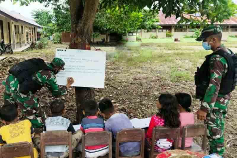 ”Materi pelajaran yang kami berikan yaitu pelajaran-pelajaran dasar seperti membaca, menulis dan menghitung serta memberikan wawasan kebangsaan mengenai Pancasila dan lagu-lagu nasional,” tambah Danpos.