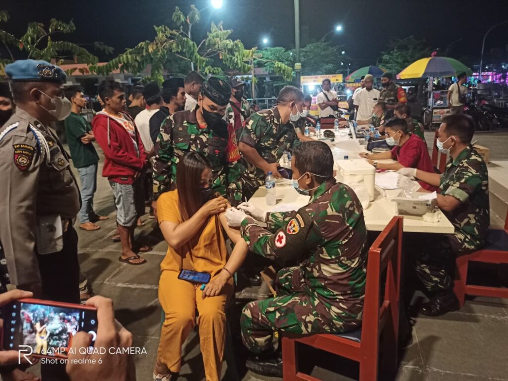 Diawali dengan registrasi peserta yang akan melaksanakan vaksinasi, skrinning kesehatan, kemudian penyuntikan vaksin, selanjutnya penginputan data dan observasi selama 30 menit, Serbuan Vaksinasi di Wilayah Kodim 1620/Loteng berjalan aman dan lancar. Para peserta vaksinasi berhasil menerima suntikan vaksin Covid-19 baik dosis pertama, kedua maupun booster.