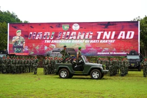 “Oleh karenanya, rangkaian kegiatan peringatan Hari Juang TNI Angkatan Darat ke-77 Tahun ini diisi dengan doa bersama dan penyaluran bantuan kemanusiaan bagi korban musibah bencana alam. Saya ucapkan terima kasih yang tulus dan penghargaan atas pengabdian, loyalitas, disiplin, dan dedikasi yang tinggi,” ujar Kasad dalam amanat yang dibacakan oleh Pangdam.