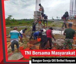 Jayapura, “Tabloidnusantara.com” – Sebanyak 10 Personel Kodim 1715/Yahukimo Babinsa Koramil 1715-07/Kenyam membantu masyarakat membangun Gereja GKI Pos PI Bethel Kenyam, yang terletak di jalan Pintu V Baru, Distrik Kenyam, Kabupaten Nduga, Kamis (03/11/2022).