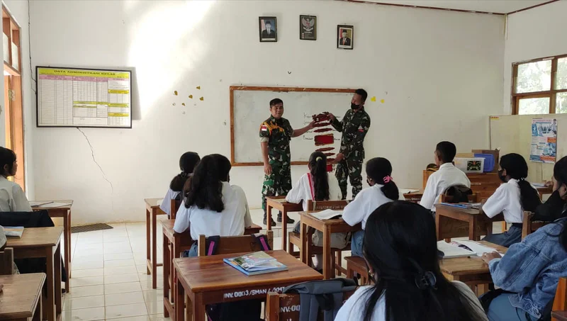 “Salah satunya seperti yang dilakukan oleh Serka Akbar dan 2 Orang Anggota Pos Kotis untuk mengajarkan membuat kerajinan tangan, kepada Siswa-Siswi kelas X di SMAN 4 Atambua,” ujarnya.