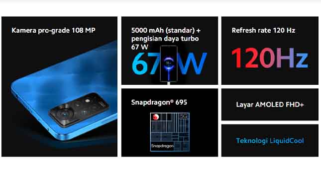Redmi Note 11 Pro 5G memiliki spesifikasi yang kurang lebih sama dengan Redmi Note 11 Pro. Perbedaan keduanya terlerak pada prosesor, di mana Redmi Note 11 Pro 5G dibekali dengan prosesor octa-core Snapdragon 695 Chipset tersebut menawarkan konektivitas 5G dengan clock-speed hingga 2,2 GHz. Sementara itu, harga yang ditawarkan untuk RAM 8 GB+128 GB, yakni Rp4.199.000. Adapun penjualan perdana Redmi Note 11 akan dimulai pada 22 Maret 2022 dan Redmi Note 11 Pro Series pada 30 Maret 2022. Namun, Anda sudah bisa membeli melalui sistem pre-order mulai Selasa (15/3/2022) kemarin melalui mi.com dan beberapa e-commerce, seperti Shopee dan Akulaku.